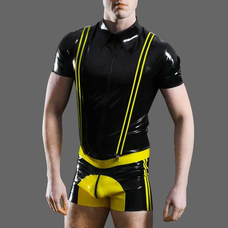 - At home with vanilla visitors or in public in its home town – It’s rubber shorts (arse zip open, no pouch) with a smart shirt and tight, smart stretch jeans that had been fitted with a hidden rear zip, braces and military style boots. A company called bleachers can help with the rear zips or you can get the slave to fit it. It will explain why this was always needed in its home town.