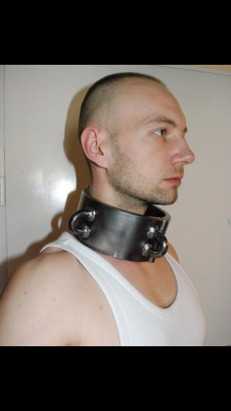 - At Home – Naked, apart from rubber shorts with a detachable front pouch and a rear zip. The front pouch was normally removed so its chastity cage/cock and balls were on display and the rear zip down. The pouch was attached and rear zip up only when it could be seen from the street. A pair of shiny black shorts and a shiny black t-shirt were provided should it need to answer the door.